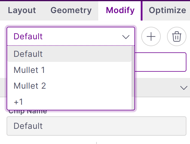 Chips are composed of both bike modifiers and linkage point-offsets. Every bike will have a Default chip configuration which sets all modifiers to zero and provides the nominal bike configuration.